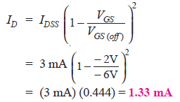 Ketika VGS JFET berubah dari –3,1 V ke –3 V, arus drain berubah dari 1 mA menjadi 1,3 mA. Berapa nilai transkonduktansi?JFET memiliki nilai gmo = 4000 μS. Tentukan nilai gm pada VGS = – 3V. Mengingat bahwa VGS (mati) = – 8