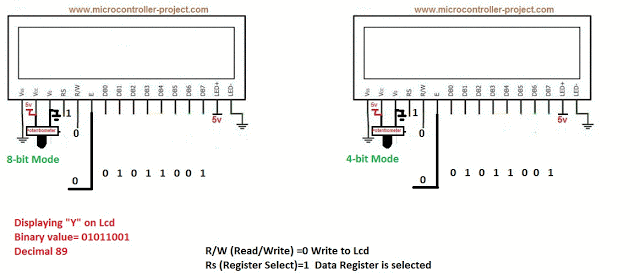 Pin 4 merupakan Register Select (RS), masukan yang pertama dari tiga command control input. Dengan membuat RS menjadi high, data karakter dapat ditransfer dari dan menuju modulnya.