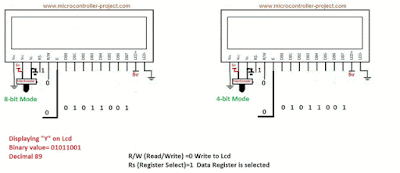 Read/Write (R/W), untuk memfungsikan sebagai perintah write maka R/W low atau menulis karakter ke modul. R/W high untuk membaca data karakter atau informasi status dari register-nya.