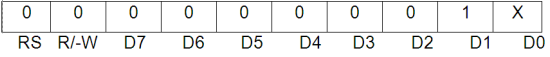 Instruksi ini akan menghapus semua display dan mengembalikan kursor ke posisi awal ( alamat 0 )