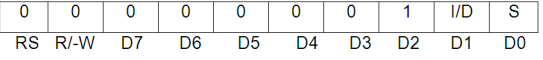 Insruksi ini mengatur arah pergerakan kursor dan apakah display akan digeser.